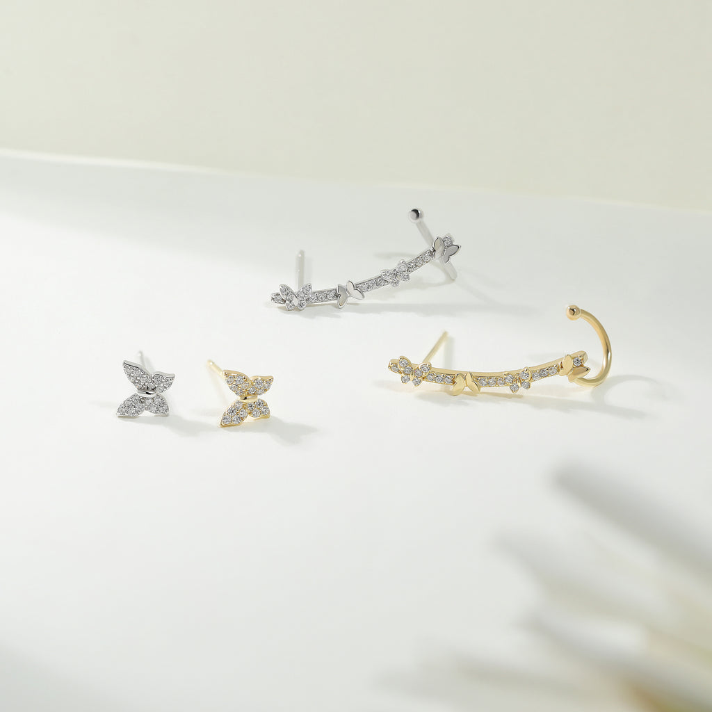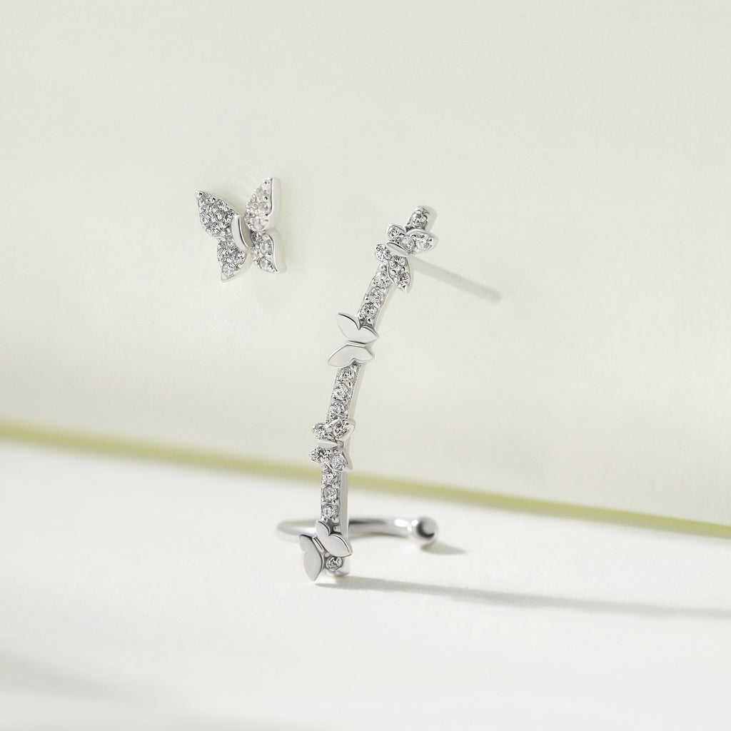 Mismatched Butterfly Climber Ear Cuff Earrings