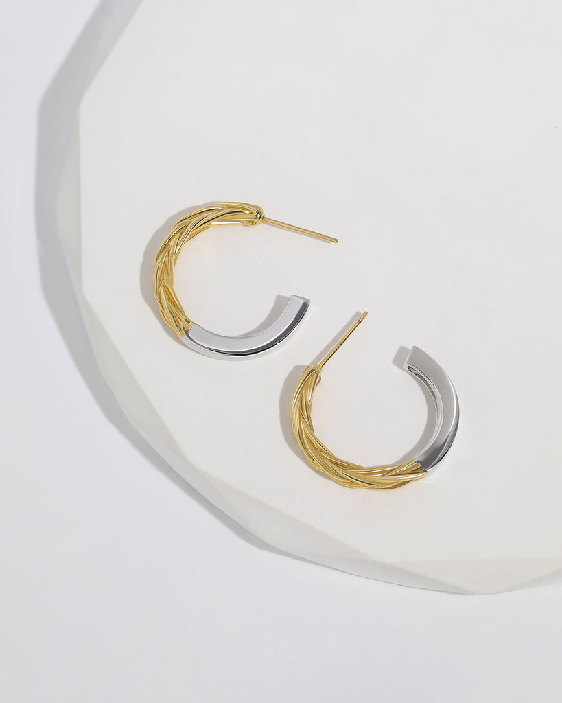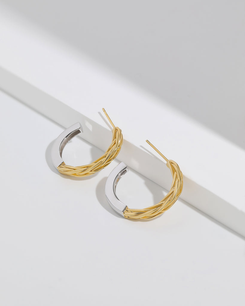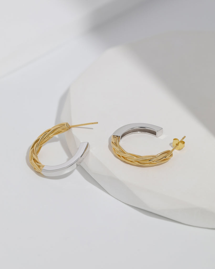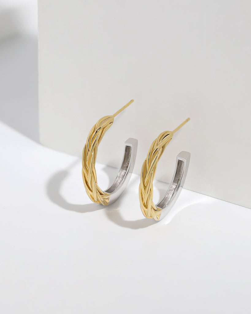 Dual-Tone Braided Hoop Earrings
