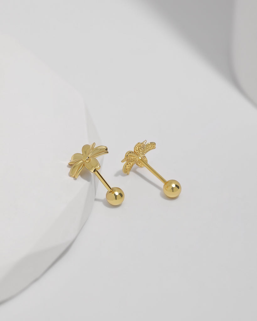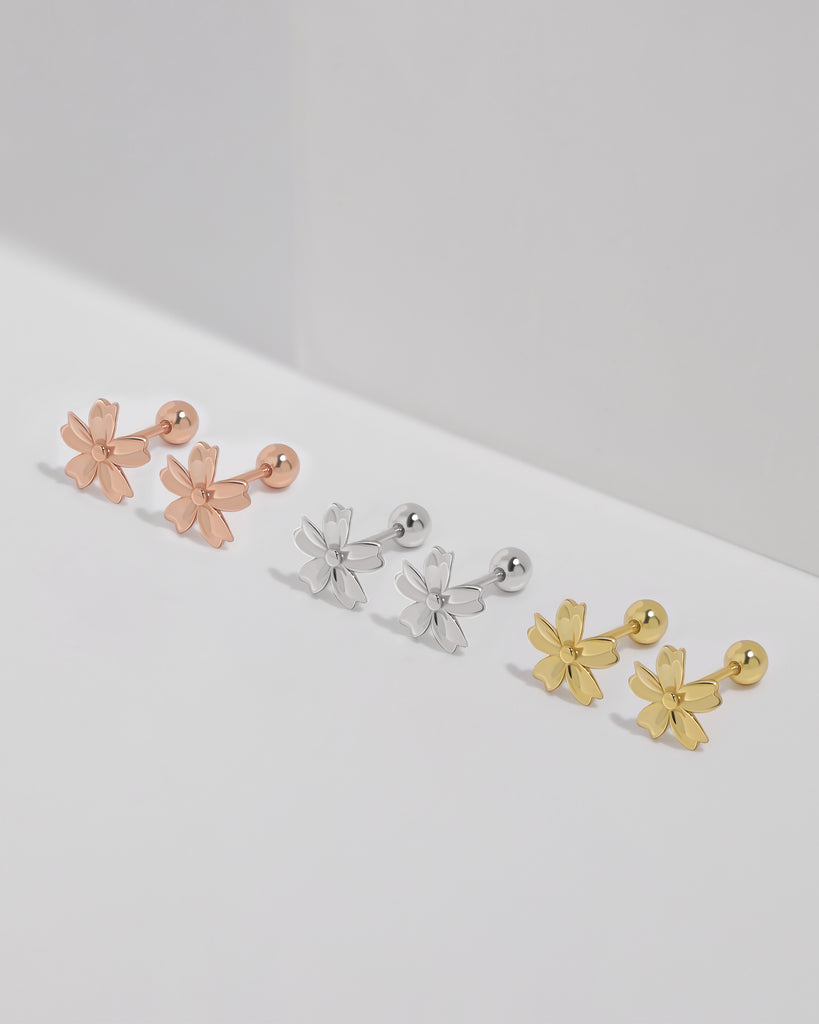 Floral Charm Screw Back Earrings