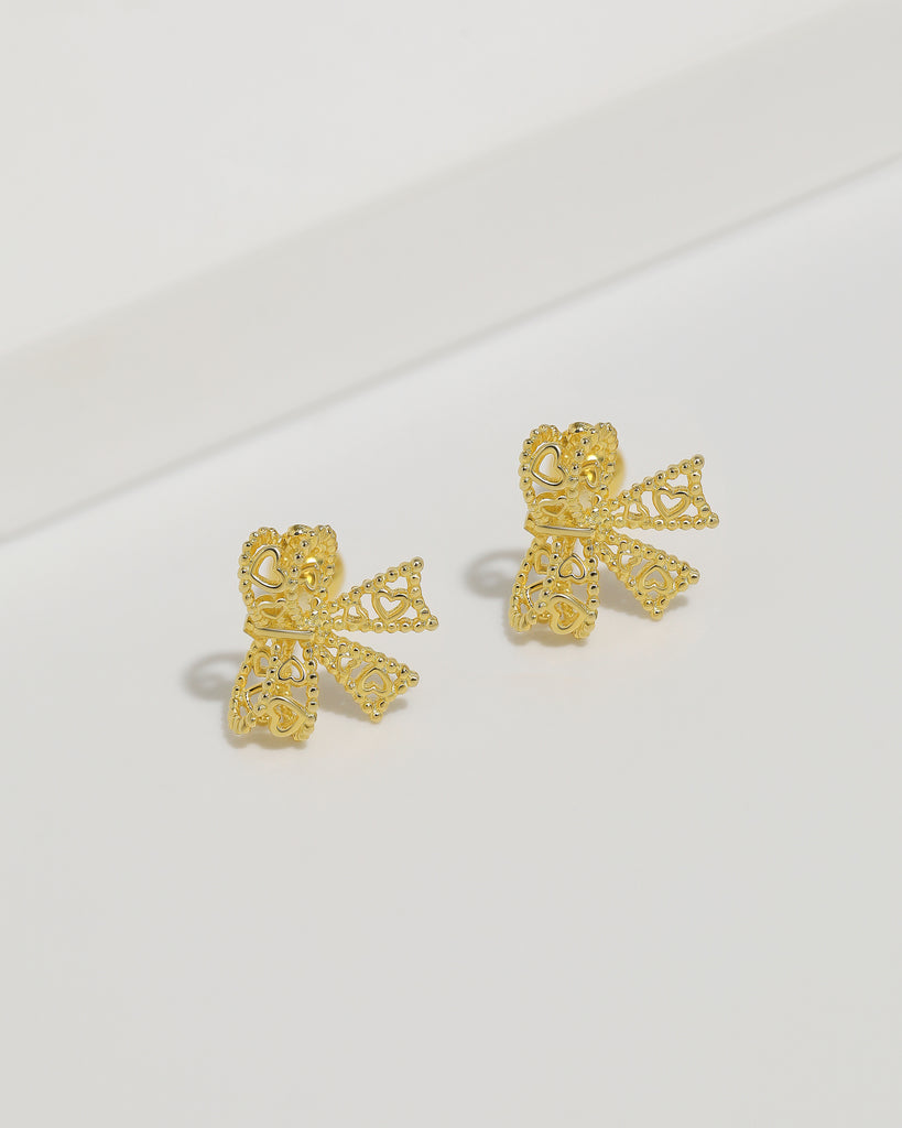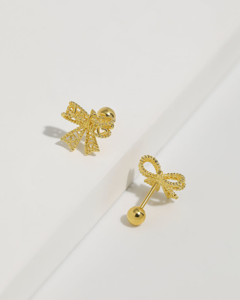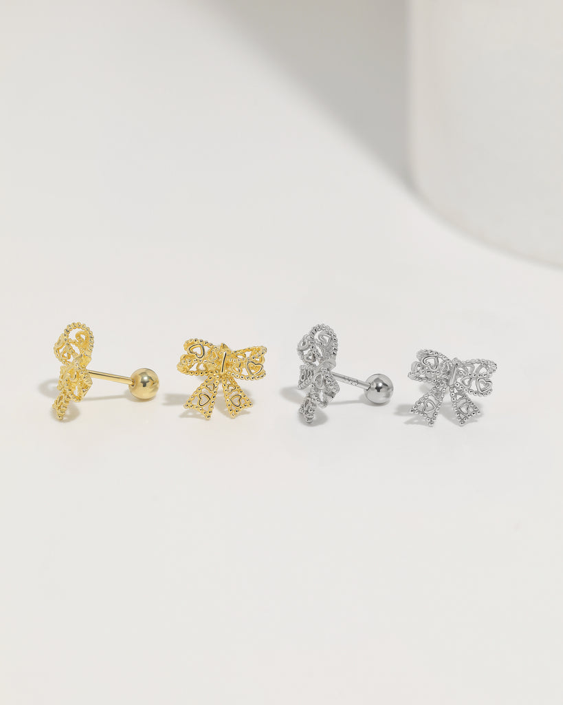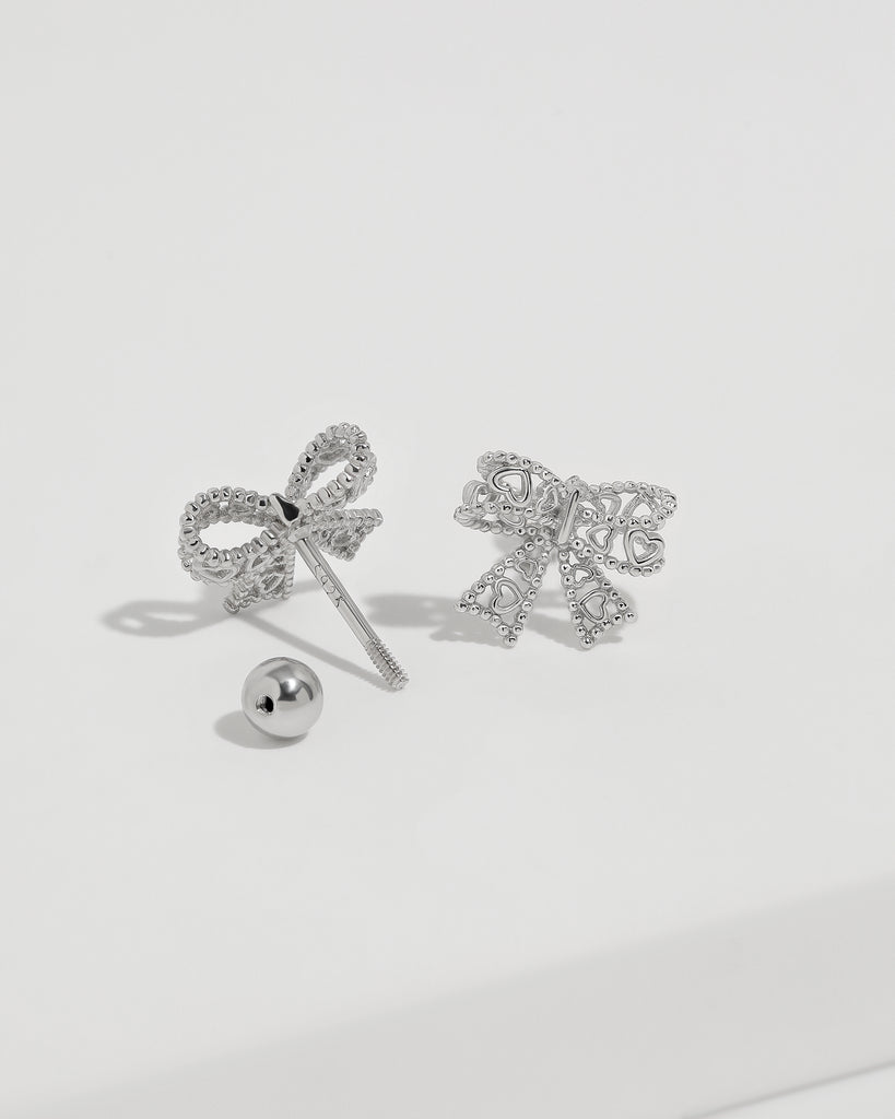 Heart Bow Screw Back Earrings