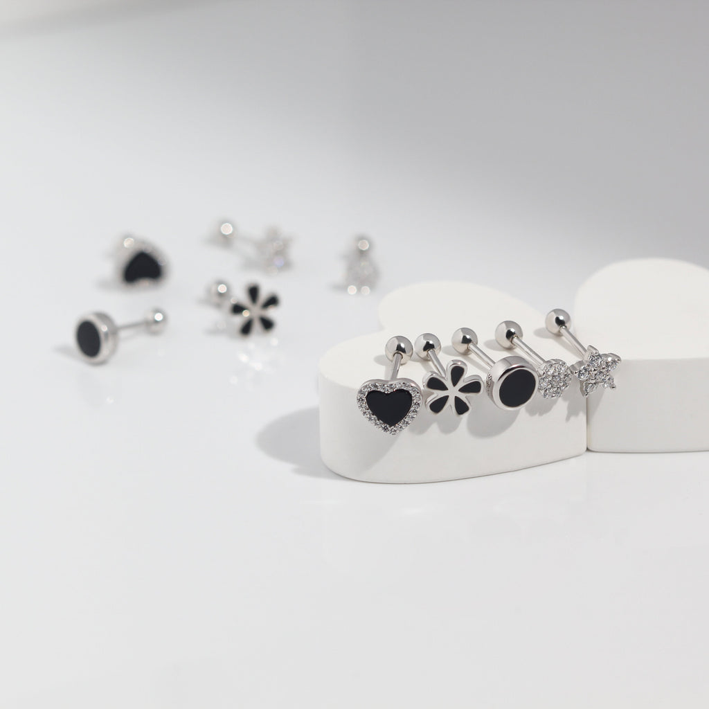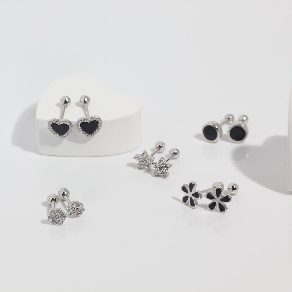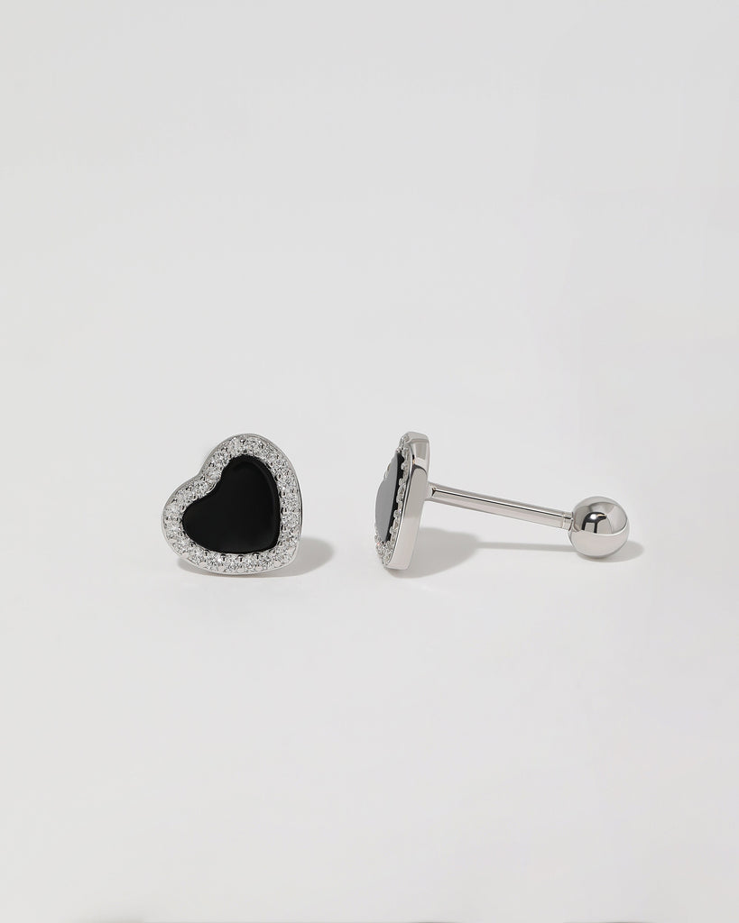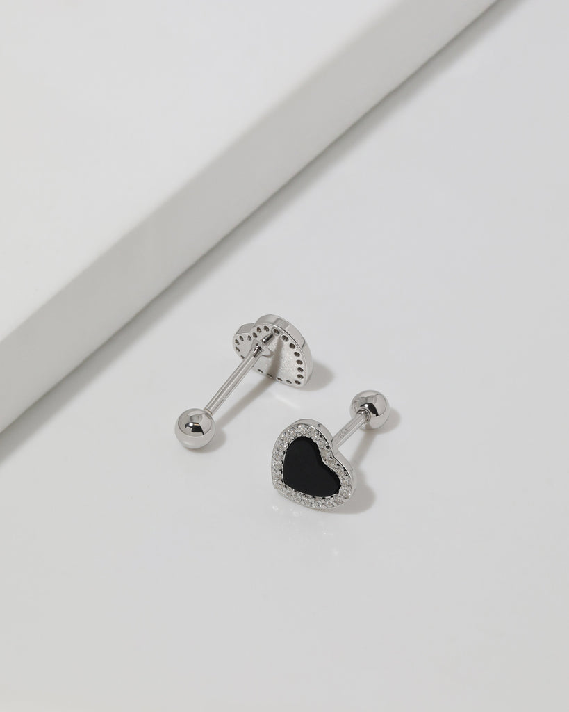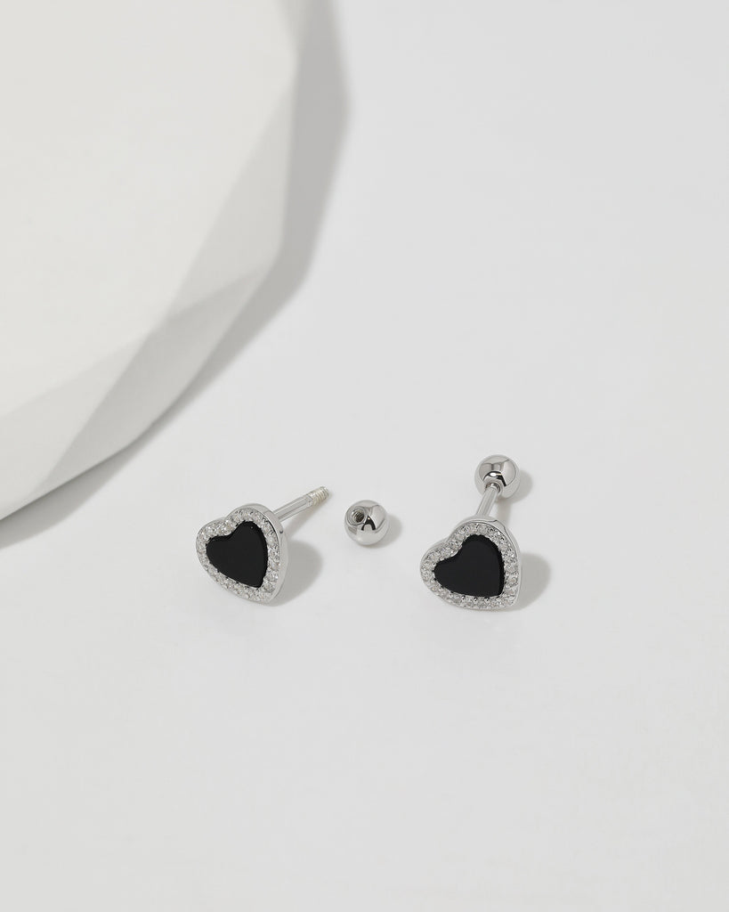 Midnight Heart Screw Back Earrings