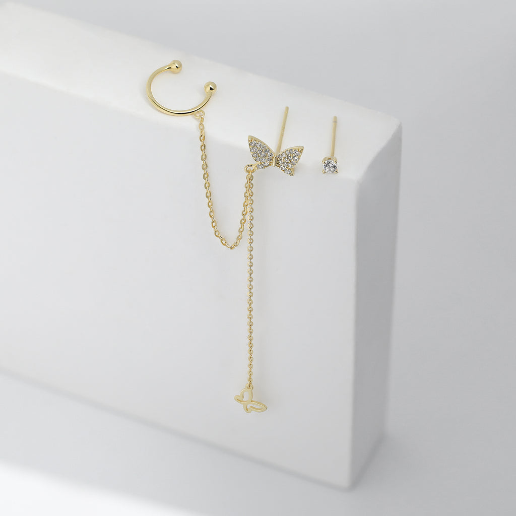 Spring Love Butterfly Ear Cuff Stud Earrings