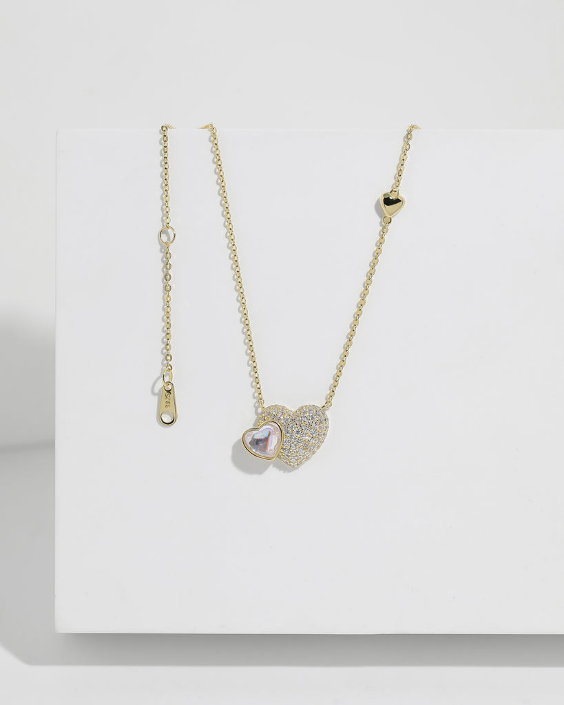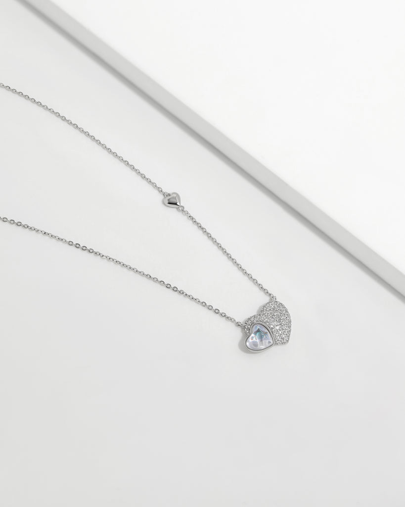 Moonstone & Diamond Heart Necklace
