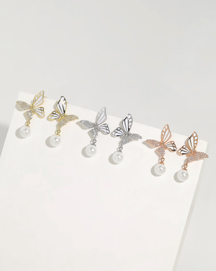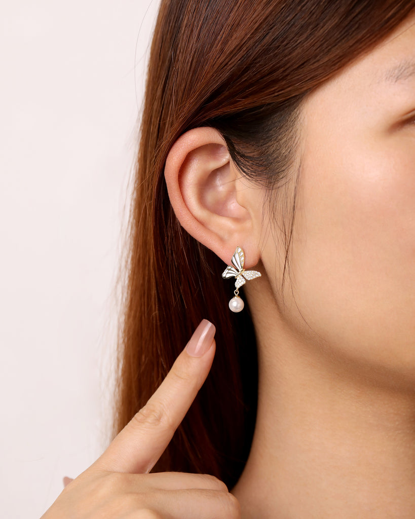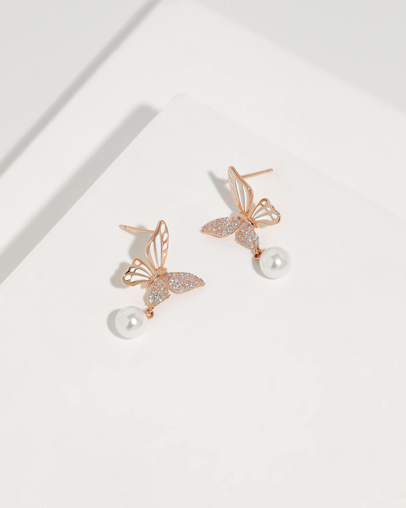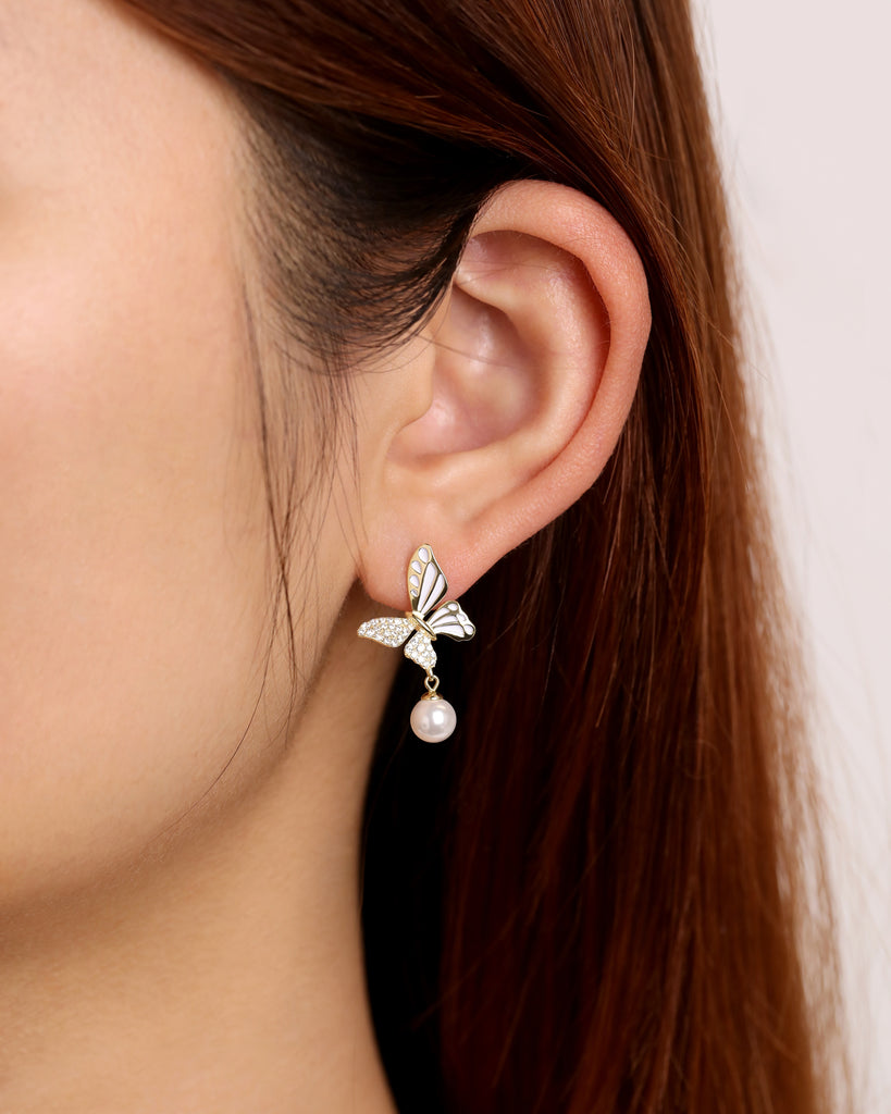 Graceful Wings Pearl Earrings