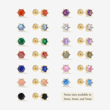 Birthstone Screw Flat Back Earrings