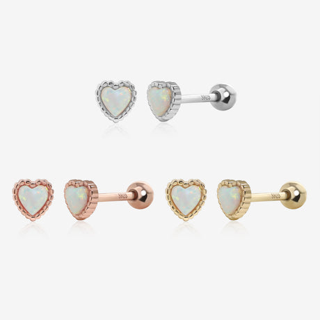Opal Heart Screw Back Earrings