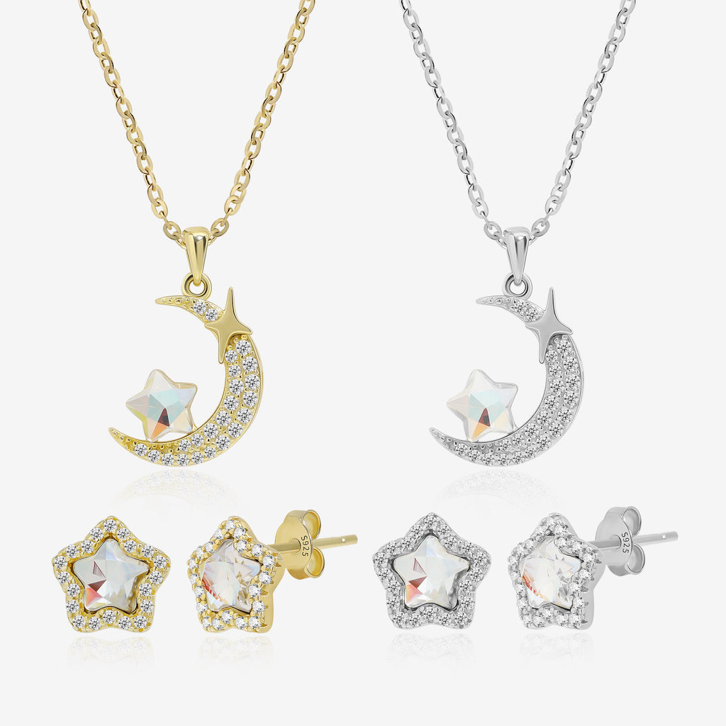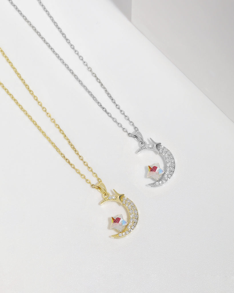 Luminous Crescent and Star Necklace