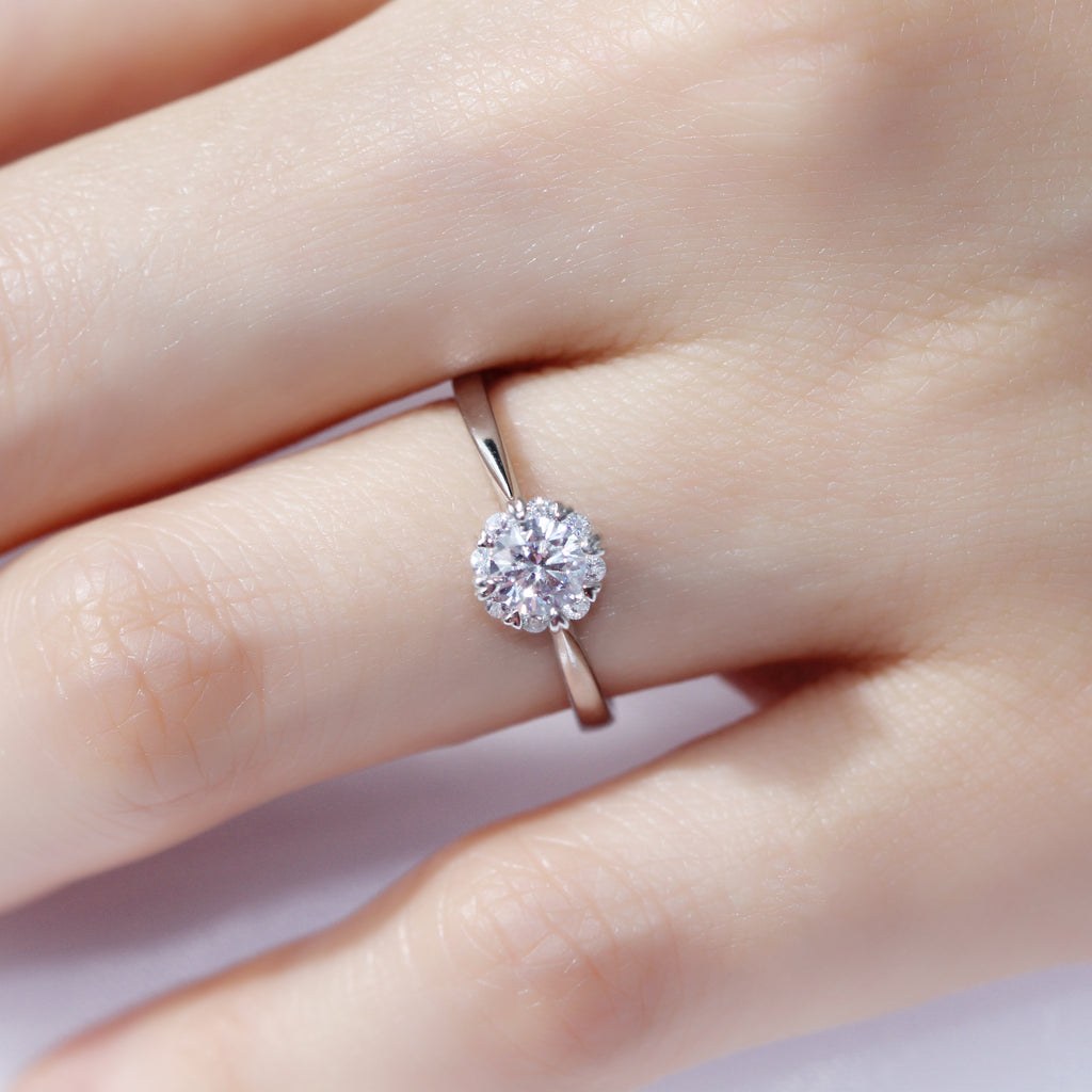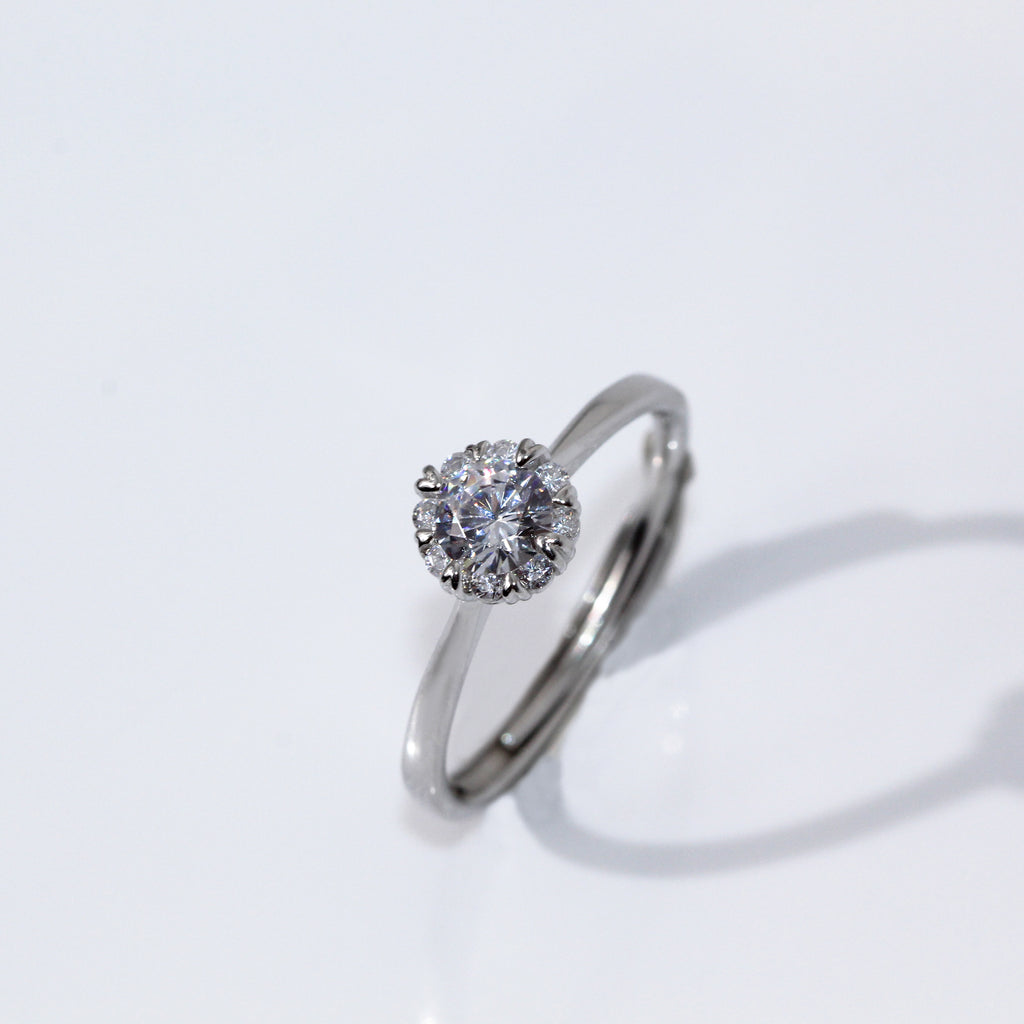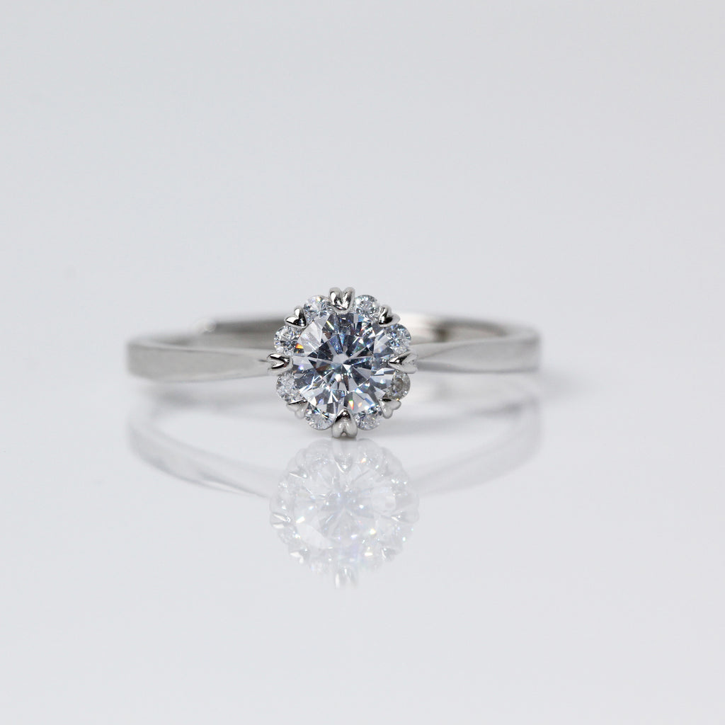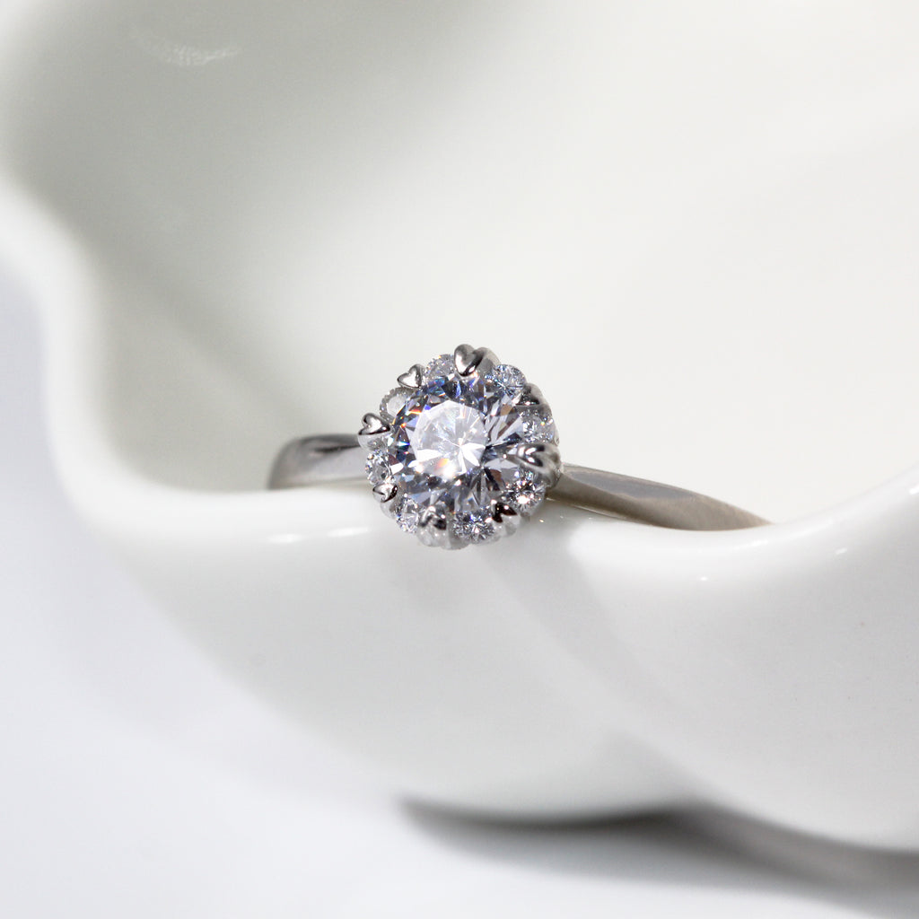 Round Cut 0.3 Carat Halo Heart Prong Ring