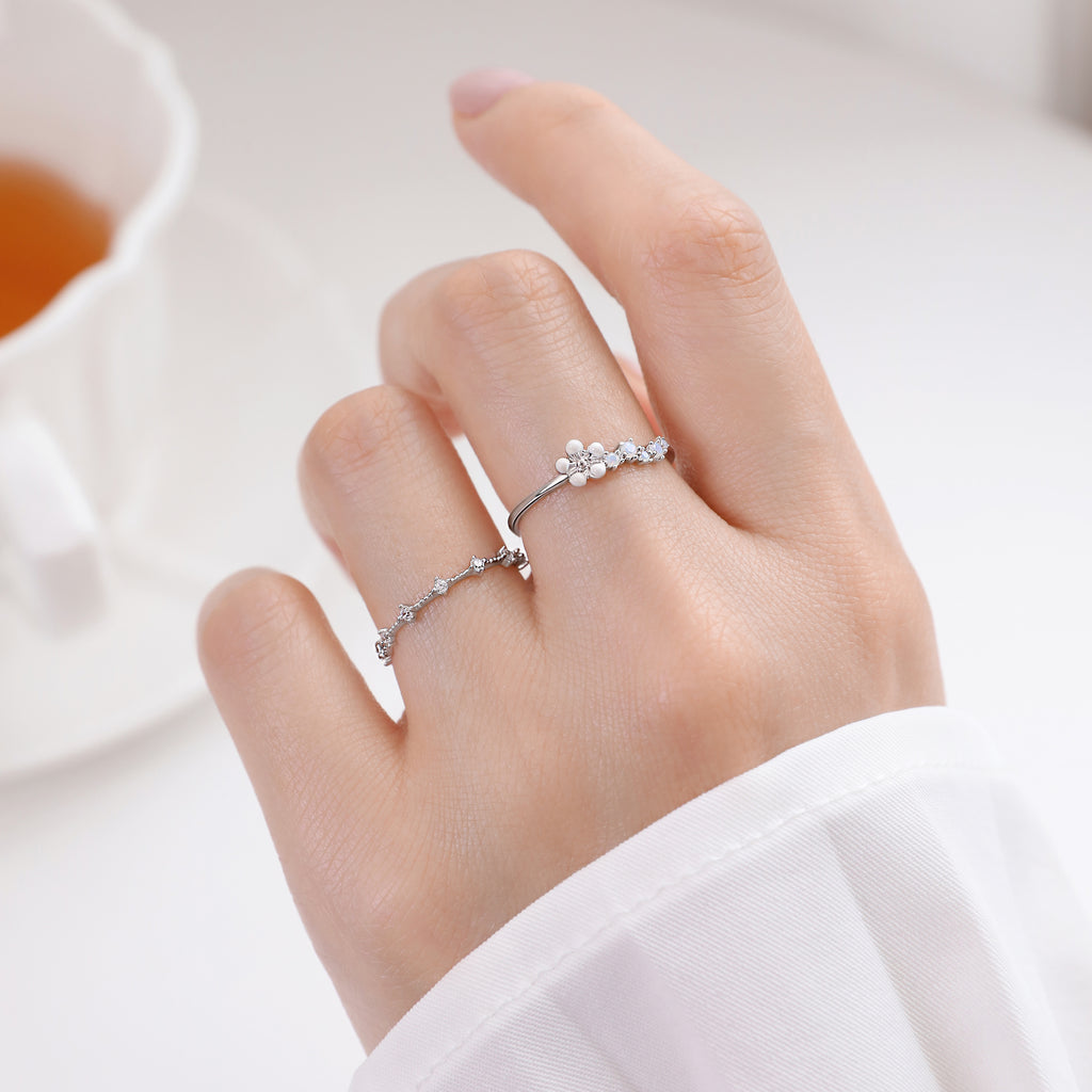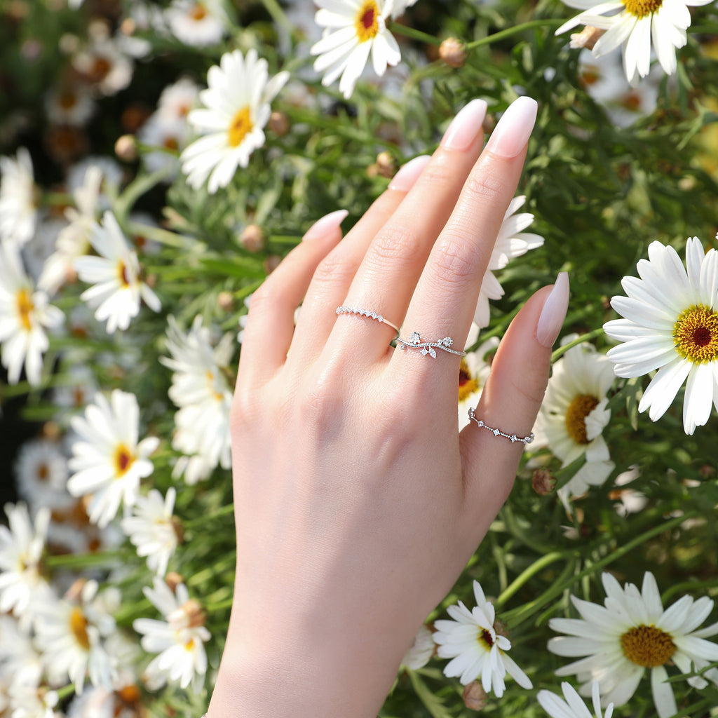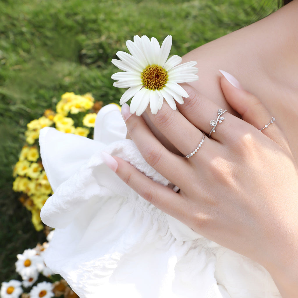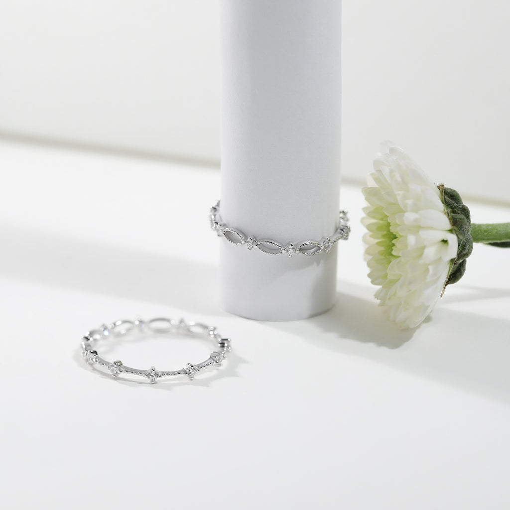 The ring is soo cute and dainty. At first I only bought it because I liked the design of one side, but the two sided design makes it so unique! Like my other purchase, its much more sparkly in person. I wish there were more sizes, but overall Im super delighted.