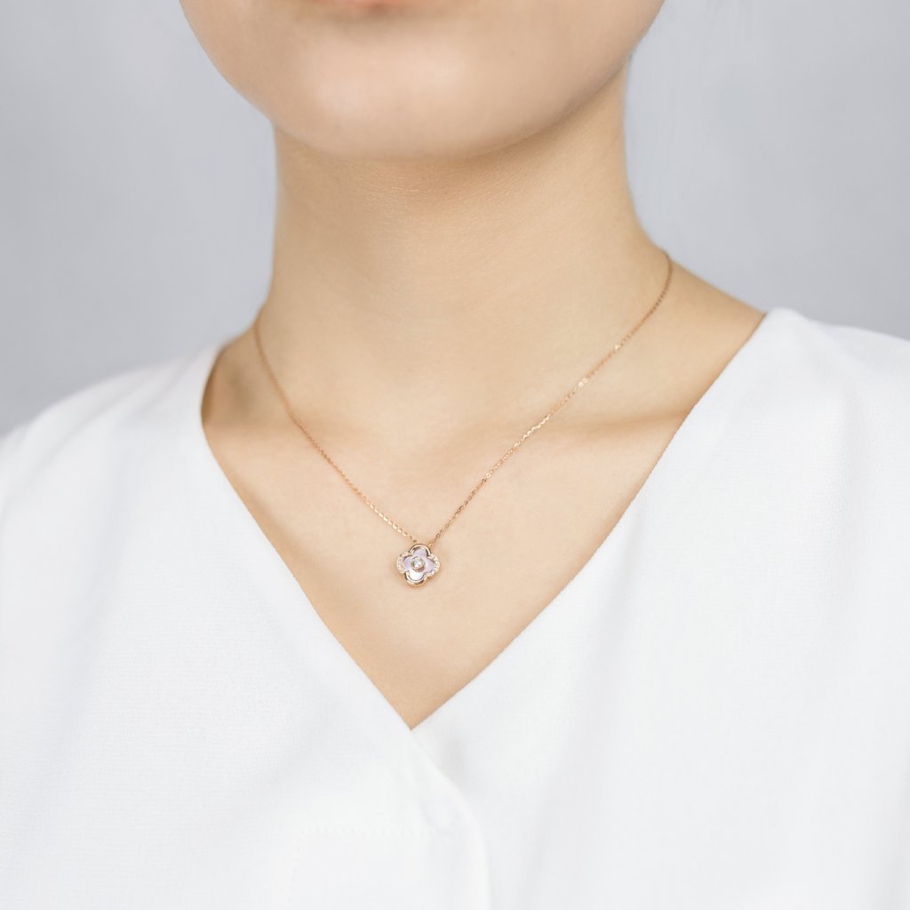 18K Rose Gold Colored Seashell Clover Necklace