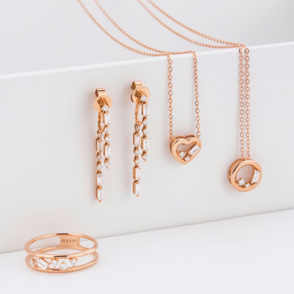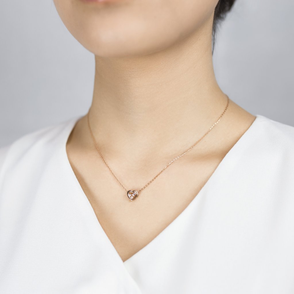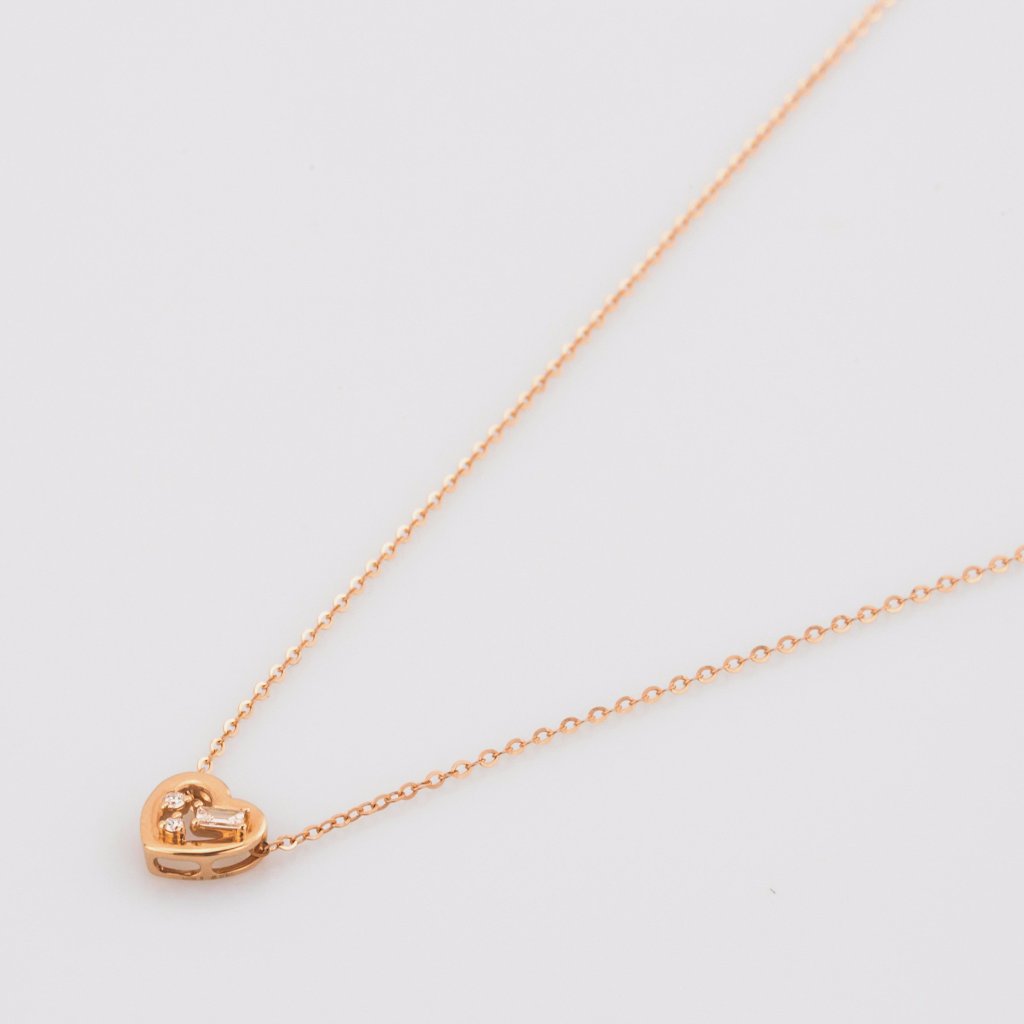18K Rose Gold Heart Baguette Cut Diamond Necklace