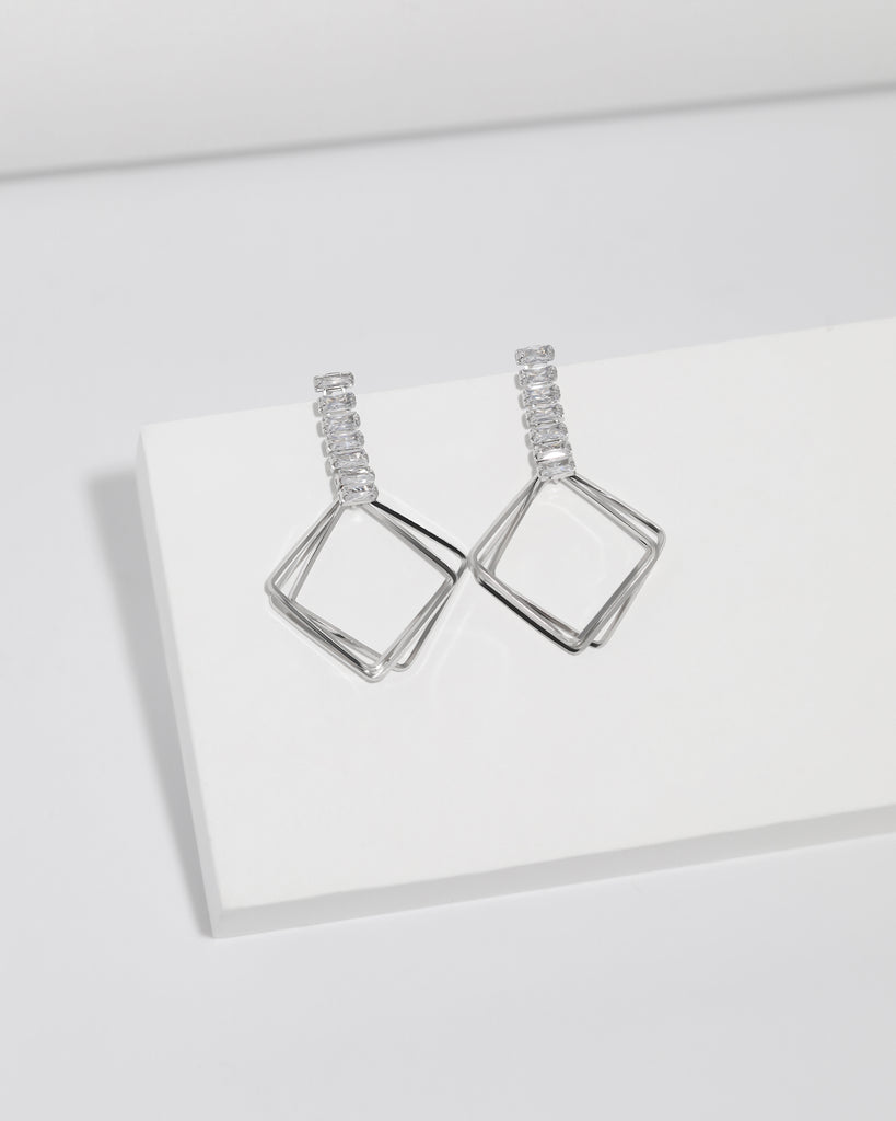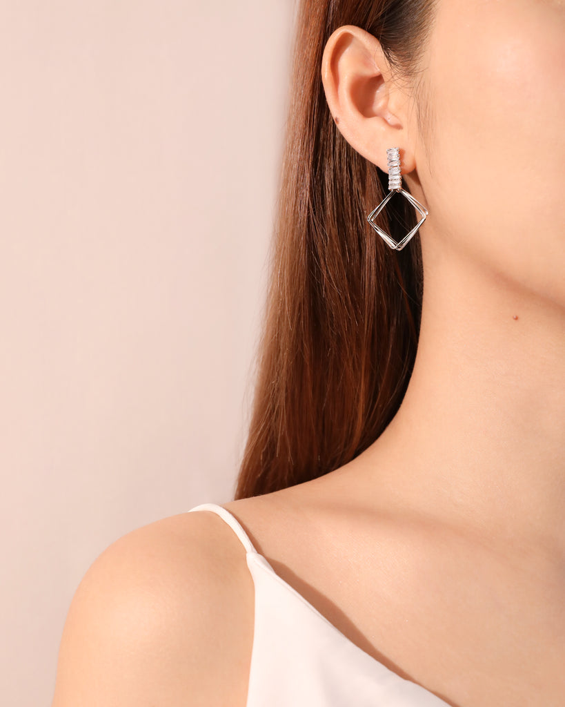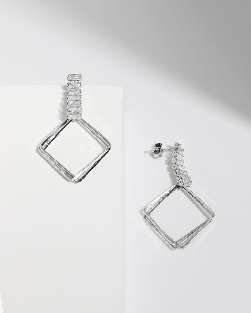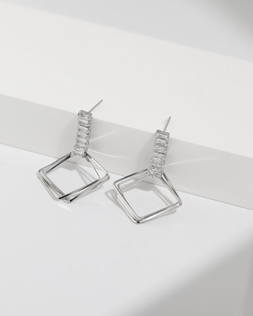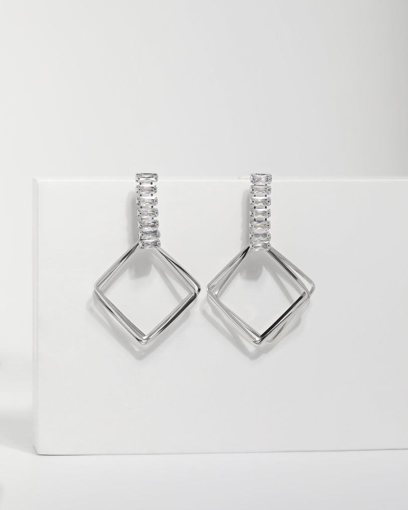 Baguette-Cut Diamond Geometric Earrings